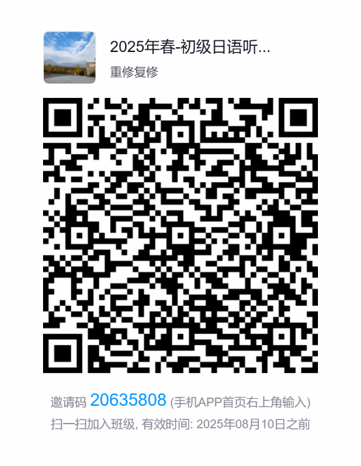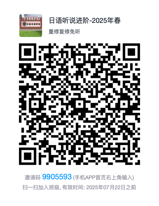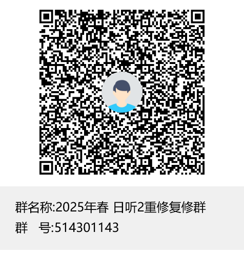 本学期申请重修复修《日语听说进阶》的同学,请加入以下QQ群和学习通网课参与学习。因课程已经开始,各项作业已经发布,请尽快加入学习通学习,以免错过作业的截止时间影响网课成绩。因个人原因没有加入学习通的同学,期末成绩出现任何问题后果自负。